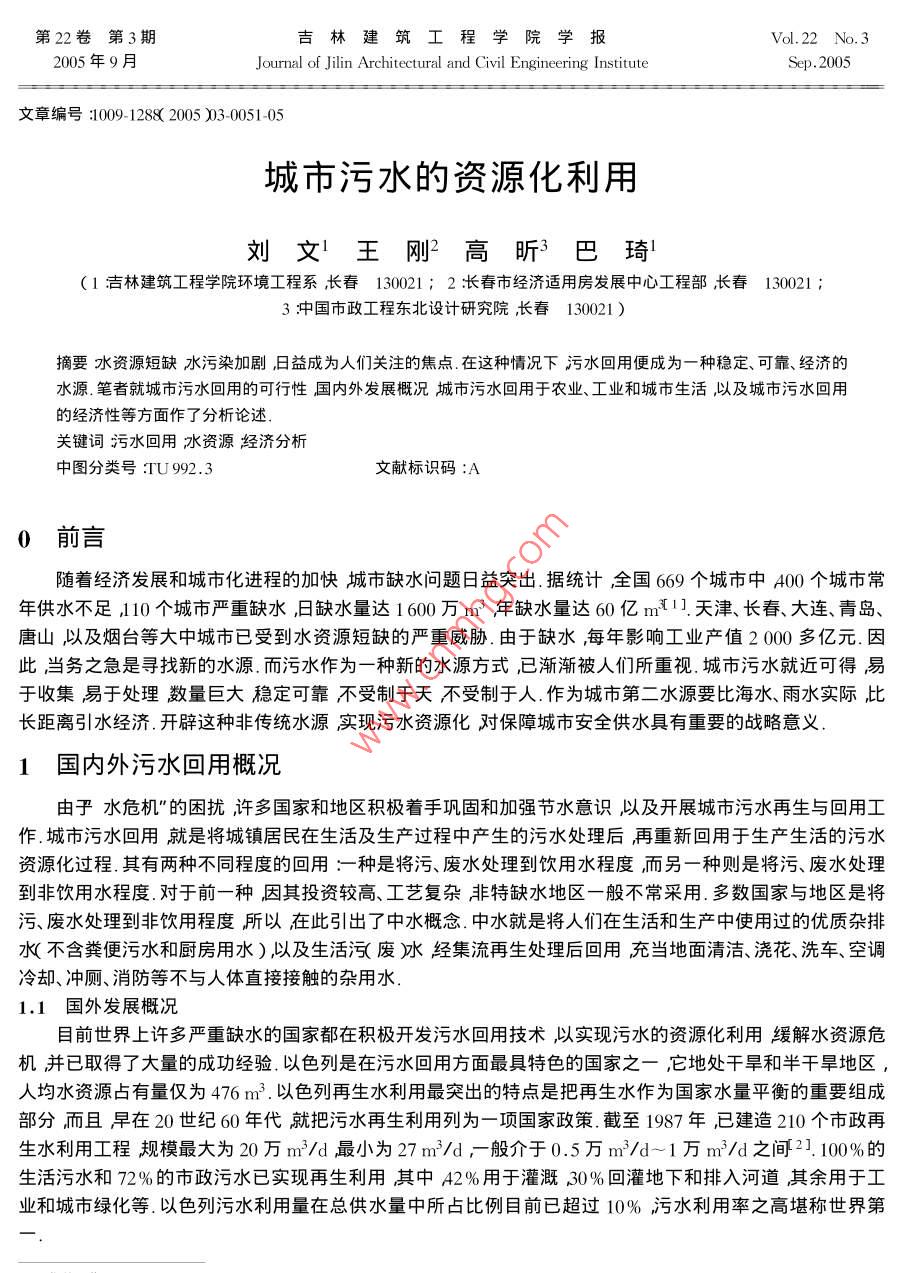 - 作者单位:吉林建筑工程学院环境工程系,长春市经济适用房发展中心工程部,中国市政工程东北设计研究院