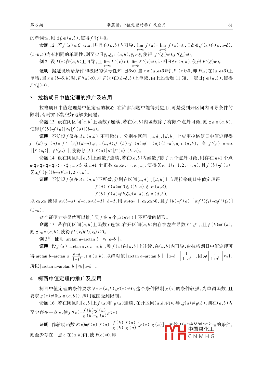 中值定理的推广及应用