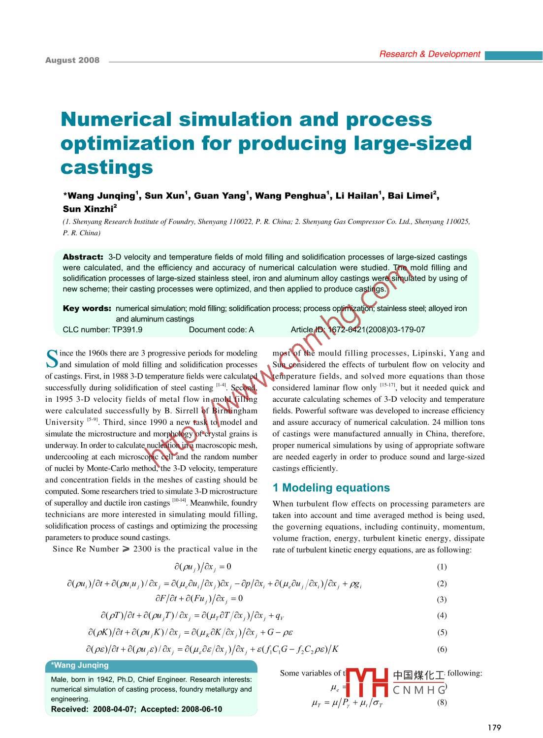 - 作者单位:Shenyang Research Institute of Foundry,Shenyang Gas Compressor Co. Ltd.