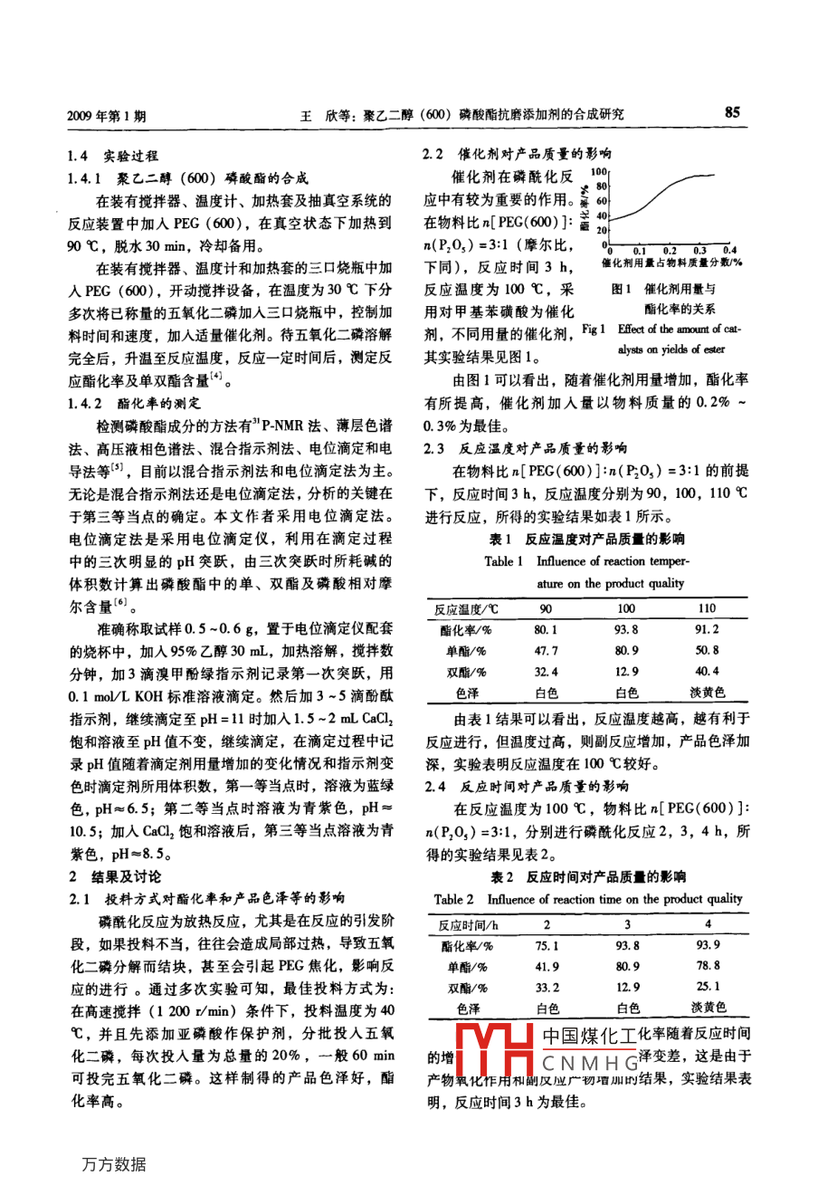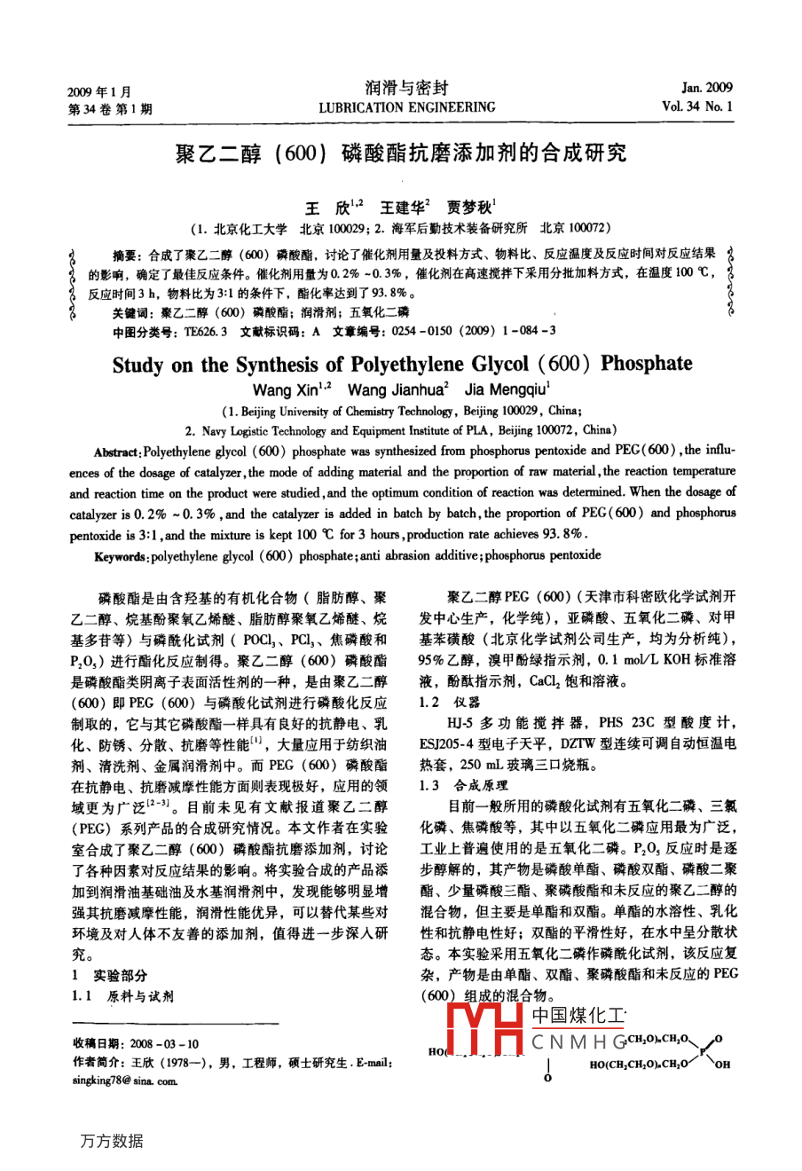 聚乙二醇(600)磷酸酯抗磨添加剂的合成研究