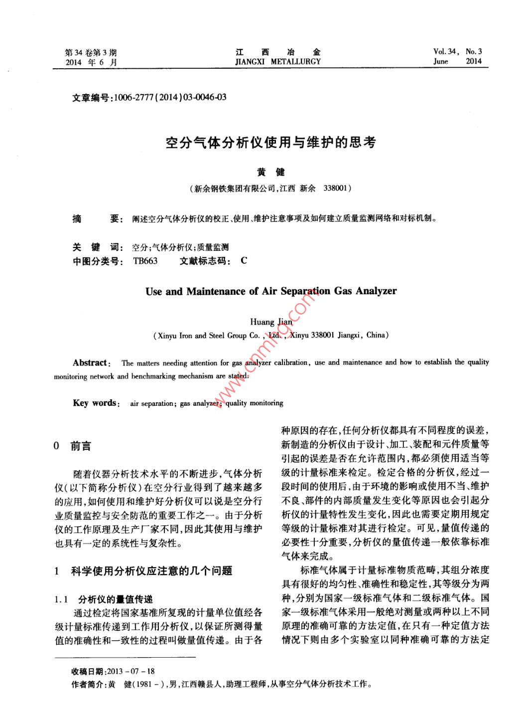 - 期刊名字:江西冶金