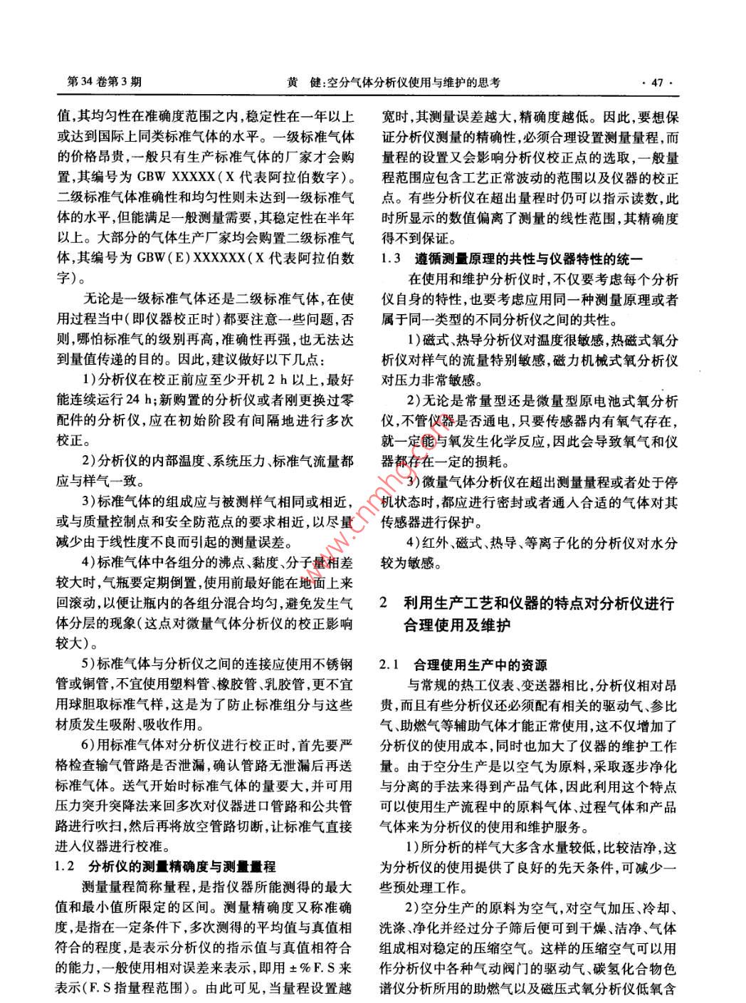 空分气体分析仪使用与维护的思考