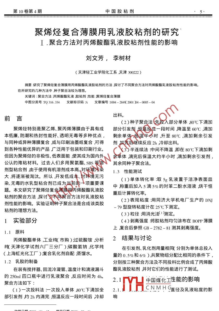 - 期刊名字:中国胶粘剂