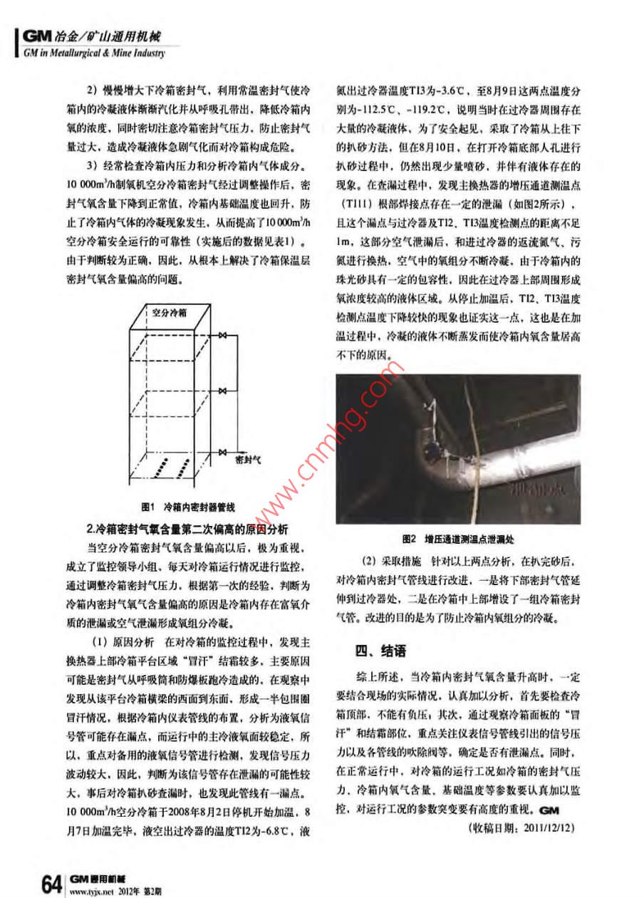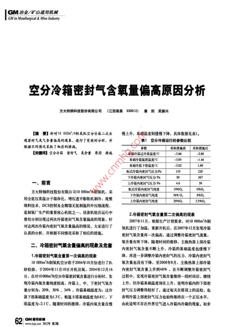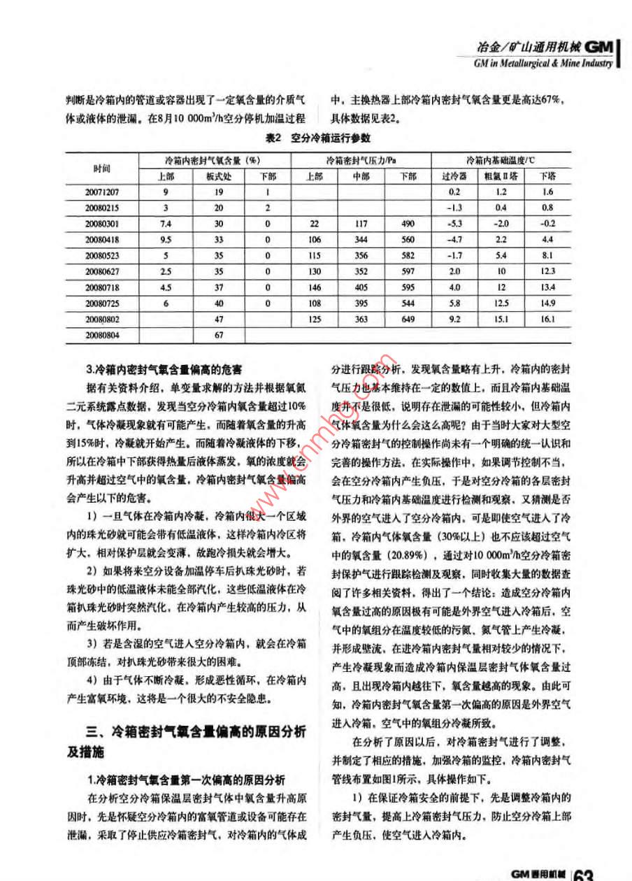 空分冷箱密封气含氧量偏高原因分析