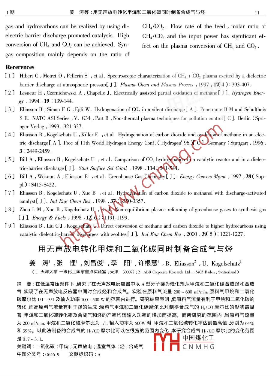 用无声放电转化甲烷和二氧化碳同时制备合成气与烃