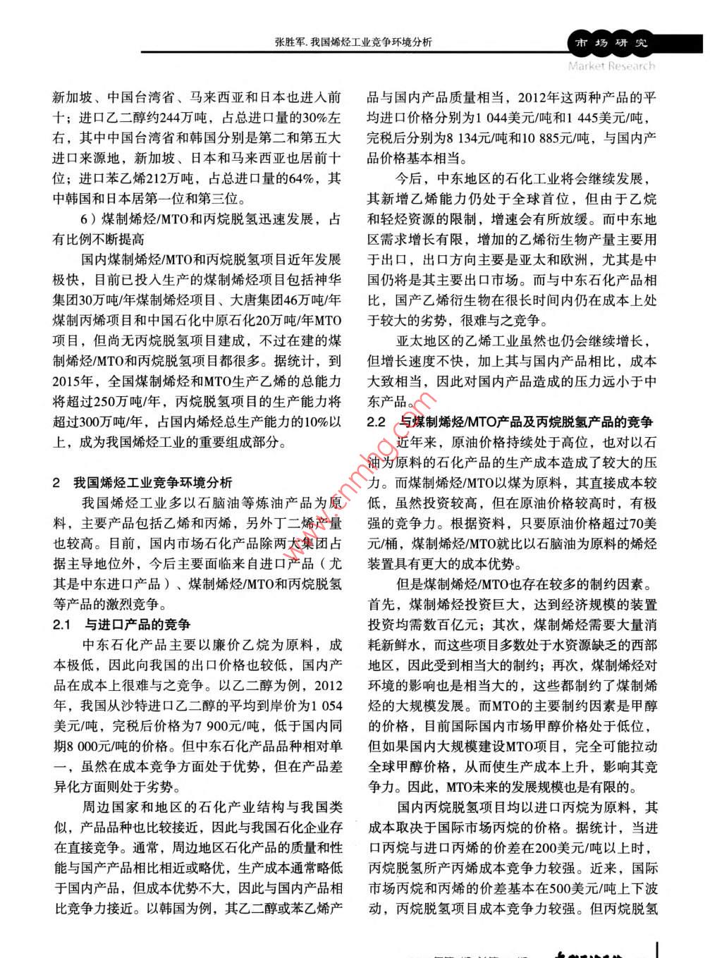 我国烯烃工业竞争环境分析