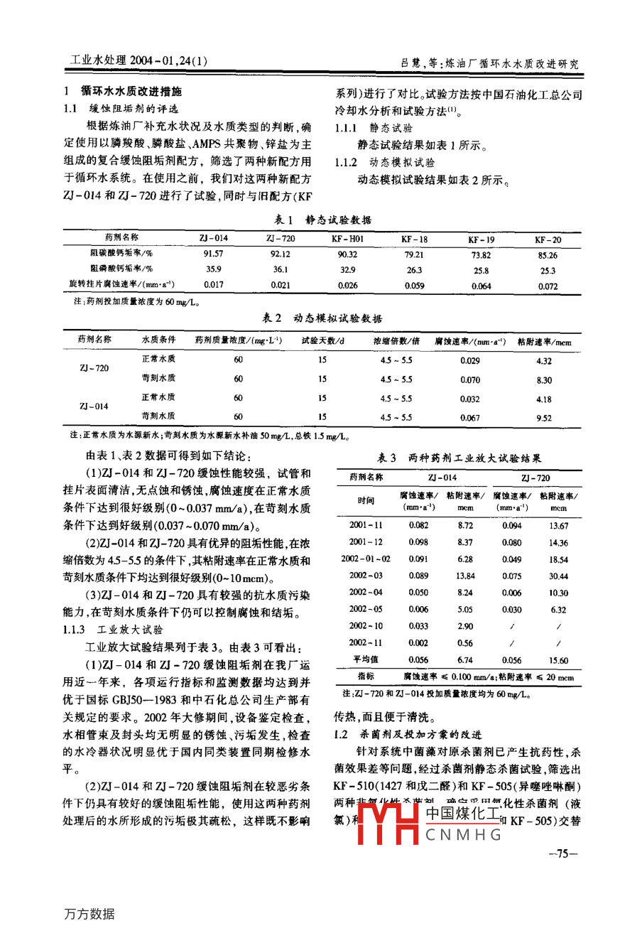 炼油厂循环水水质改进研究