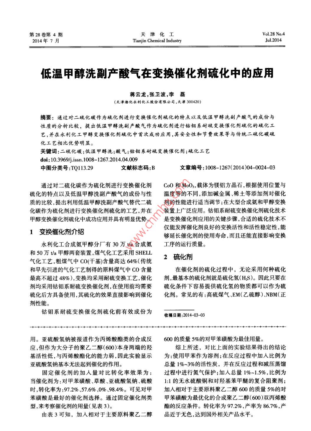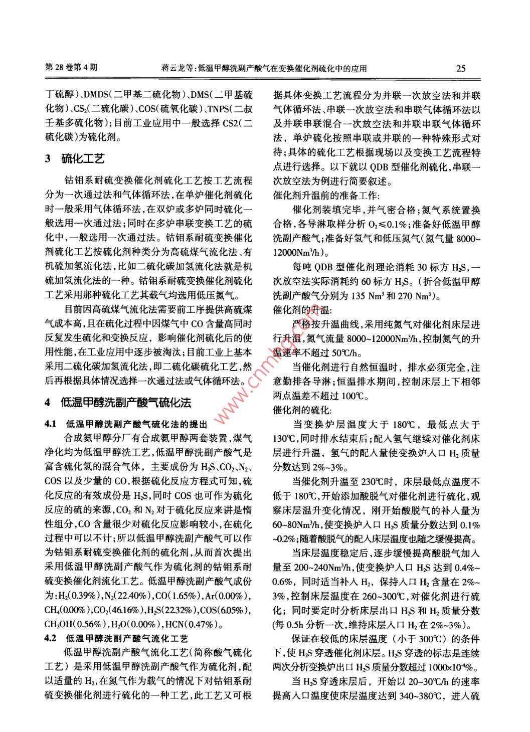 低温甲醇洗副产酸气在变换催化剂硫化中的应用
