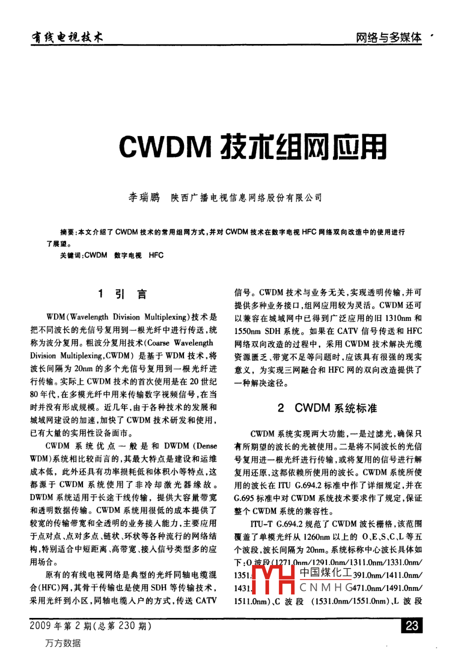 - 期刊名字:有线电视技术