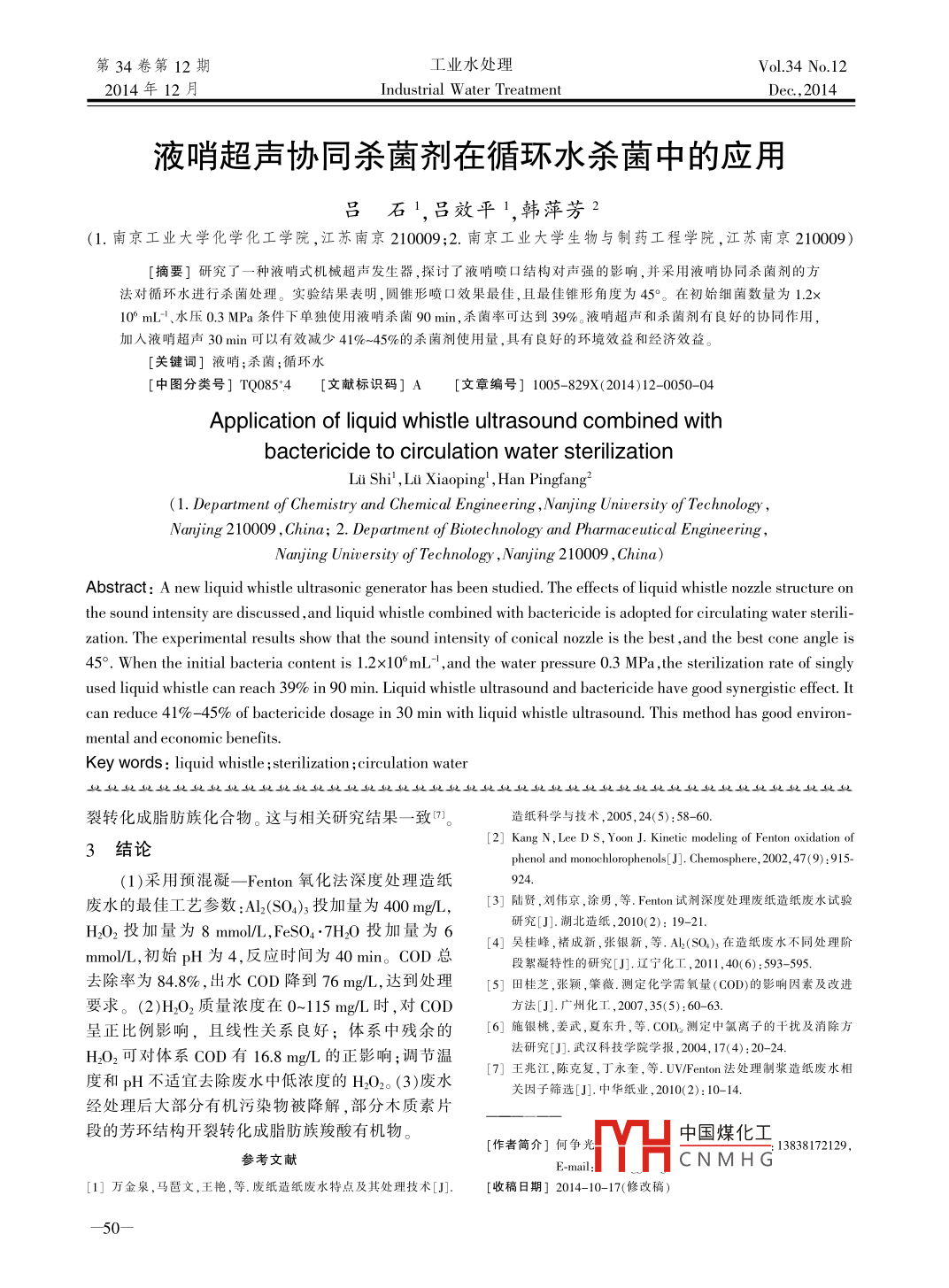 液哨超声协同杀菌剂在循环水杀菌中的应用