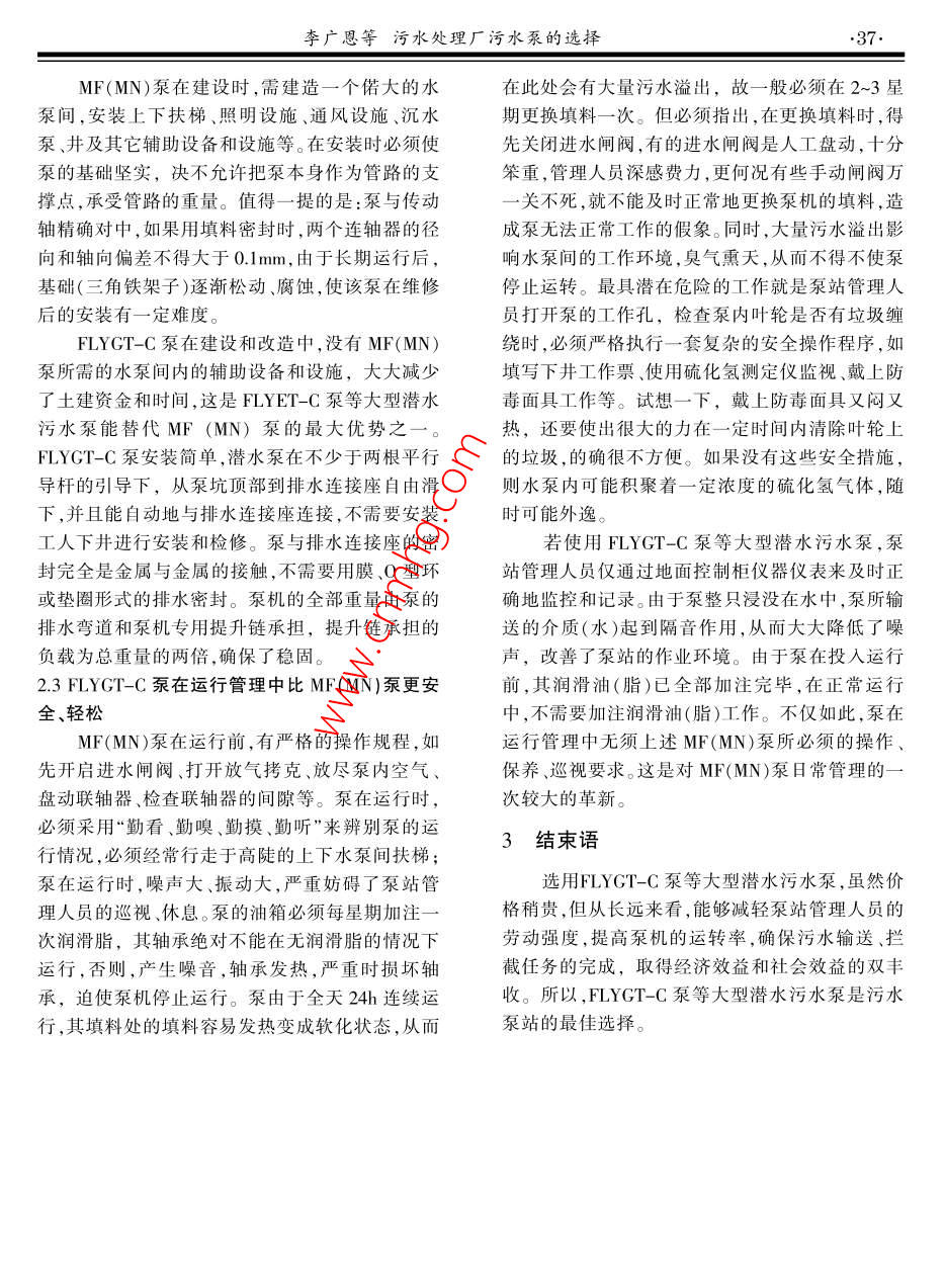 污水处理厂污水泵的选择