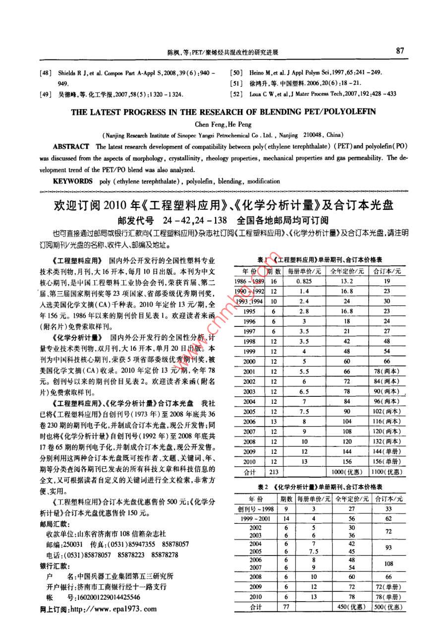 - 期刊名字:工程塑料应用