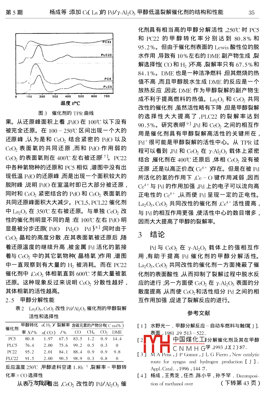 添加Ce(La)的Pd/γ-Al2O3甲醇低温裂解催化剂的结构和性能