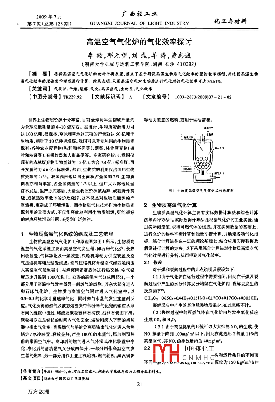 高温空气气化炉的气化效率探讨