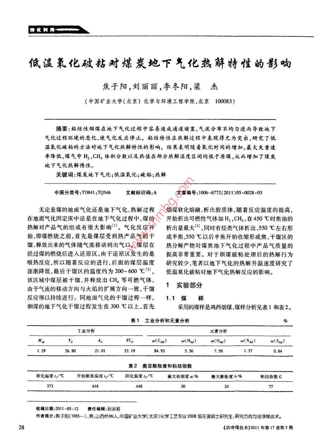 - 期刊名字:洁净煤技术