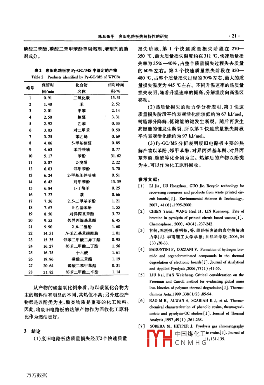 废旧电路板热解特性的研究