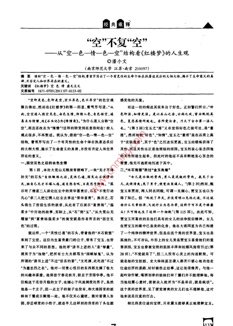 "空"不复"空"——从"空——色——情——色——空"结构看《红楼梦》的人生观