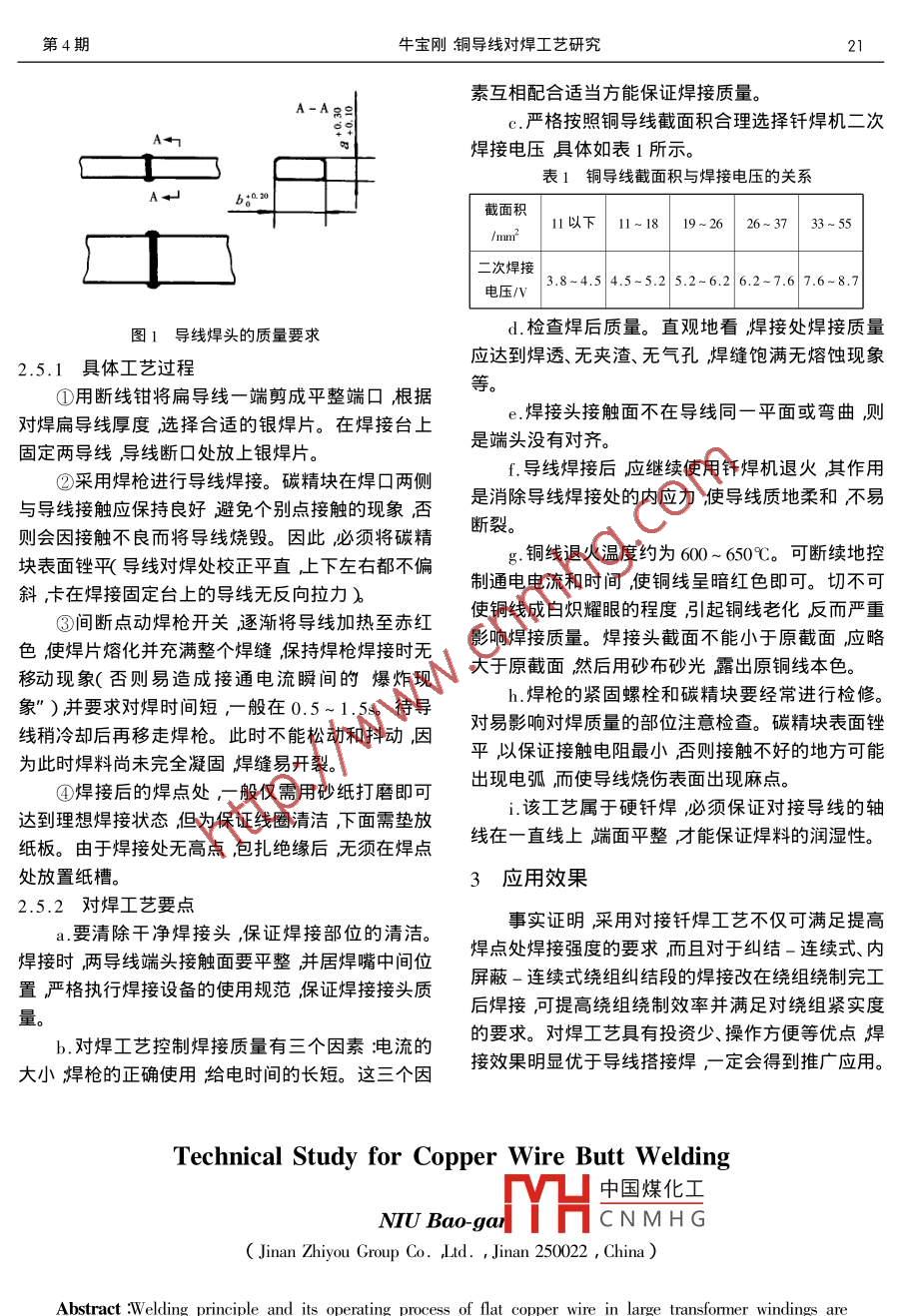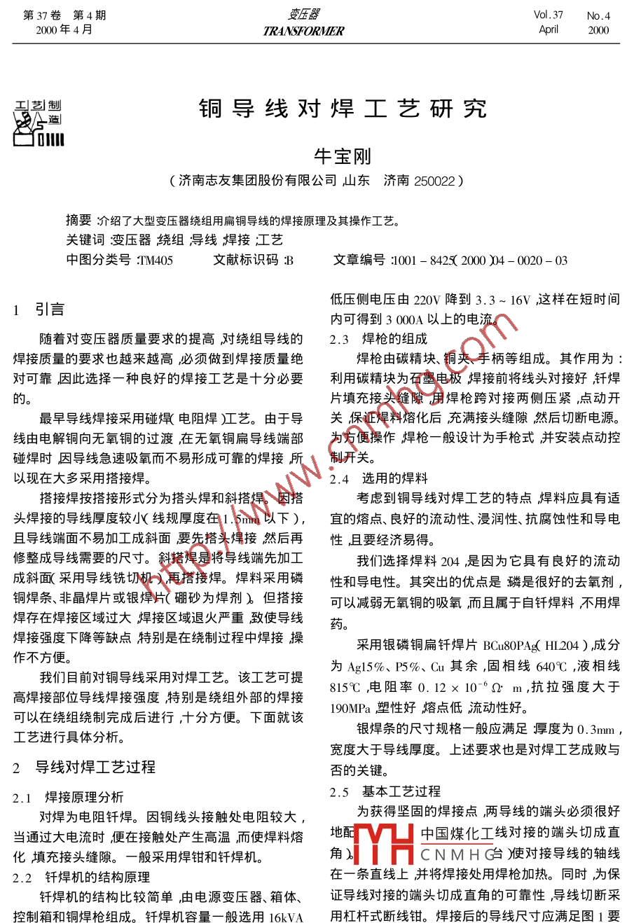 铜导线对焊工艺研究