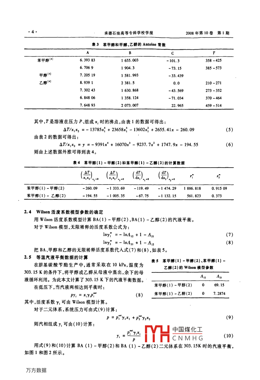 苯甲醇-甲醇与苯甲醇-乙醇二元体系汽液平衡