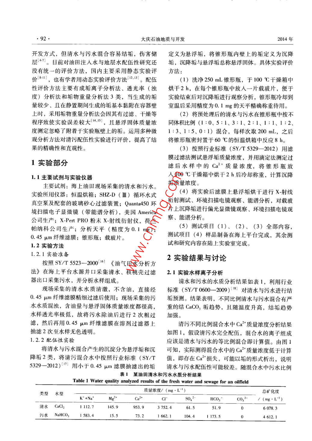 清水与污水配伍性微观评价方法