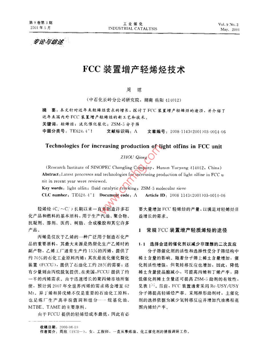 - 期刊名字:工业催化