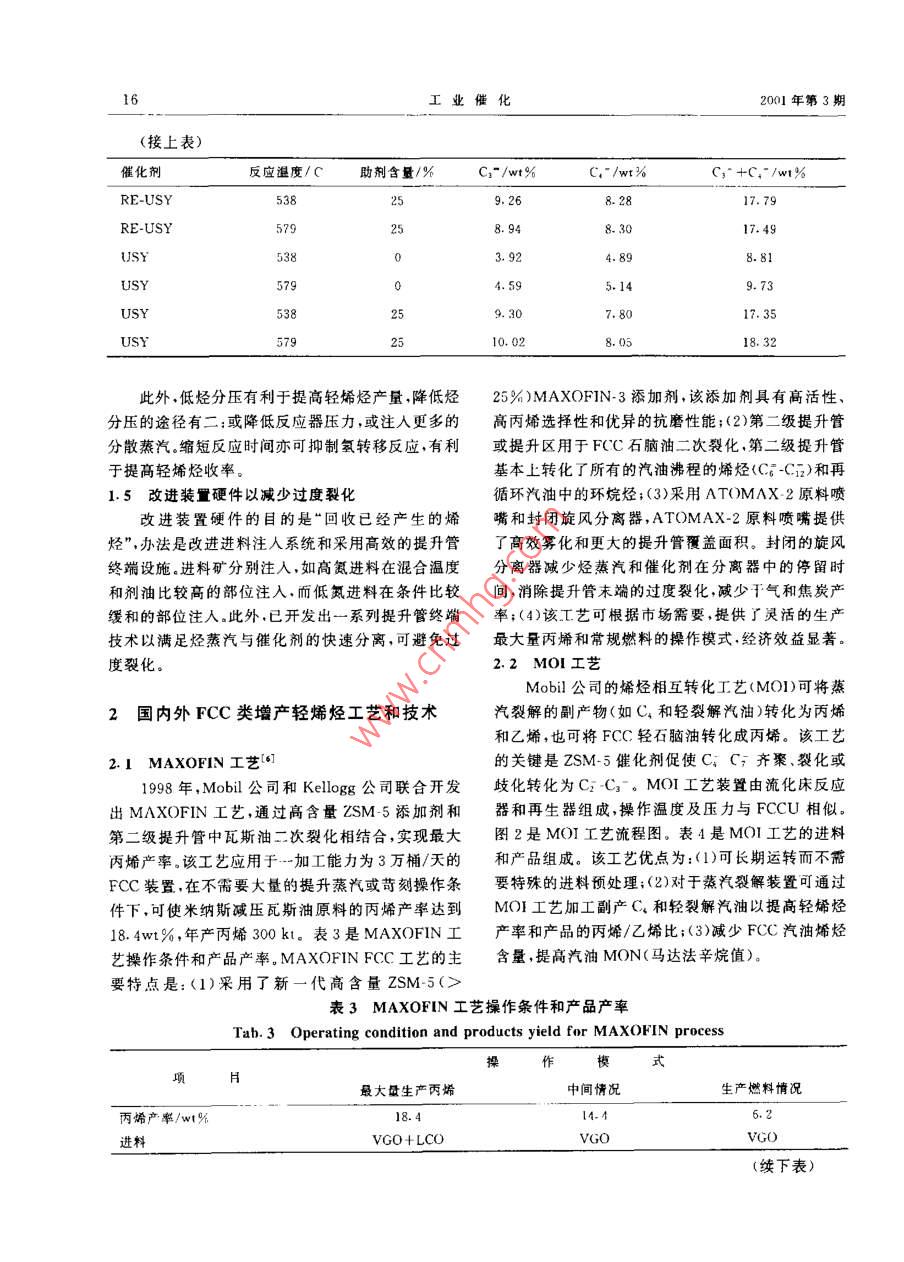 FCC装置增产轻烯烃技术