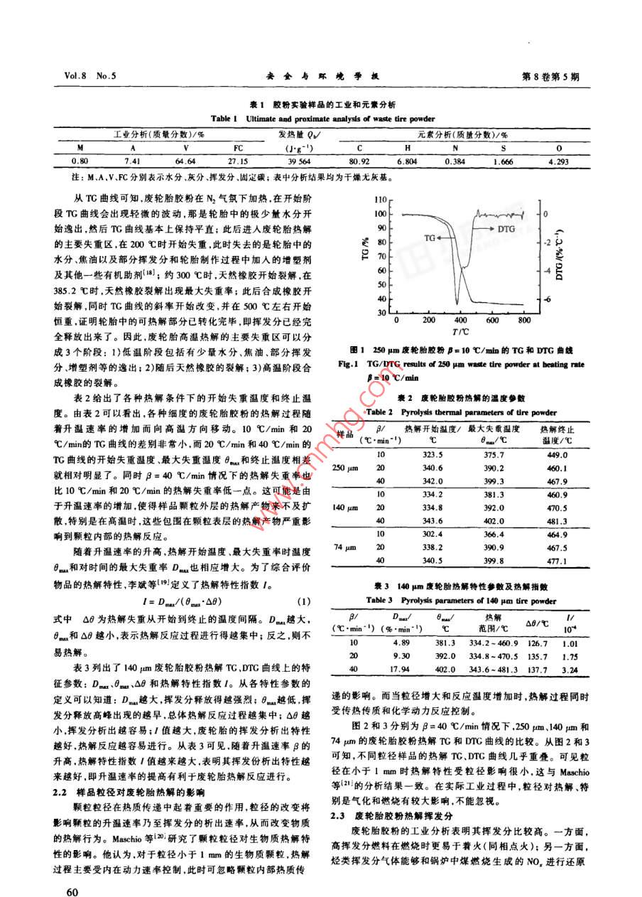 废胶粉的热重实验及与神华煤粉热解的比较