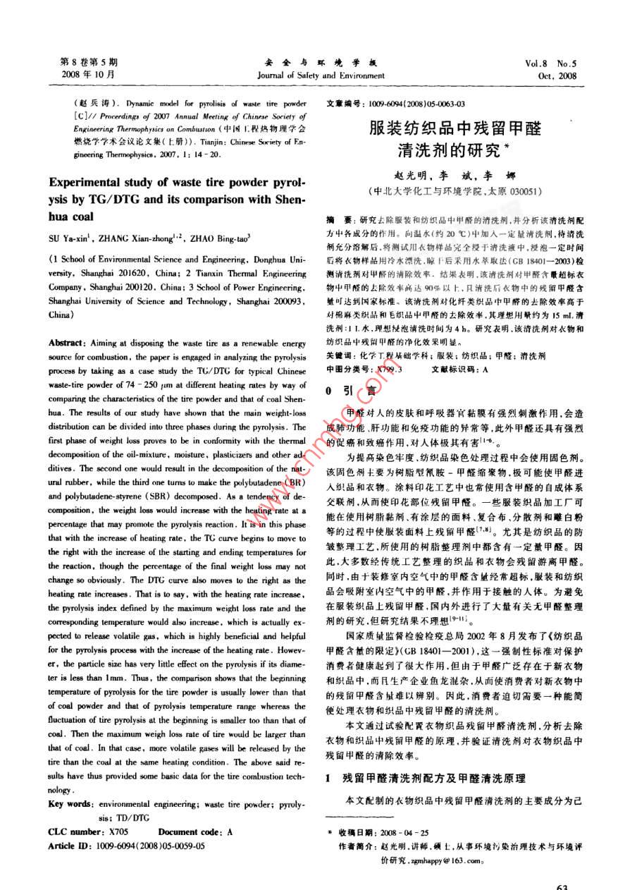 - 期刊名字:安全与环境学报