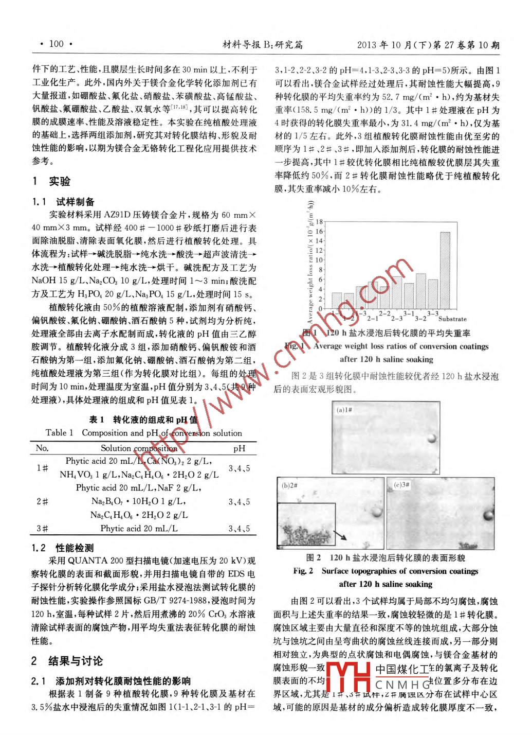 压铸镁合金植酸转化处理中添加剂的研究