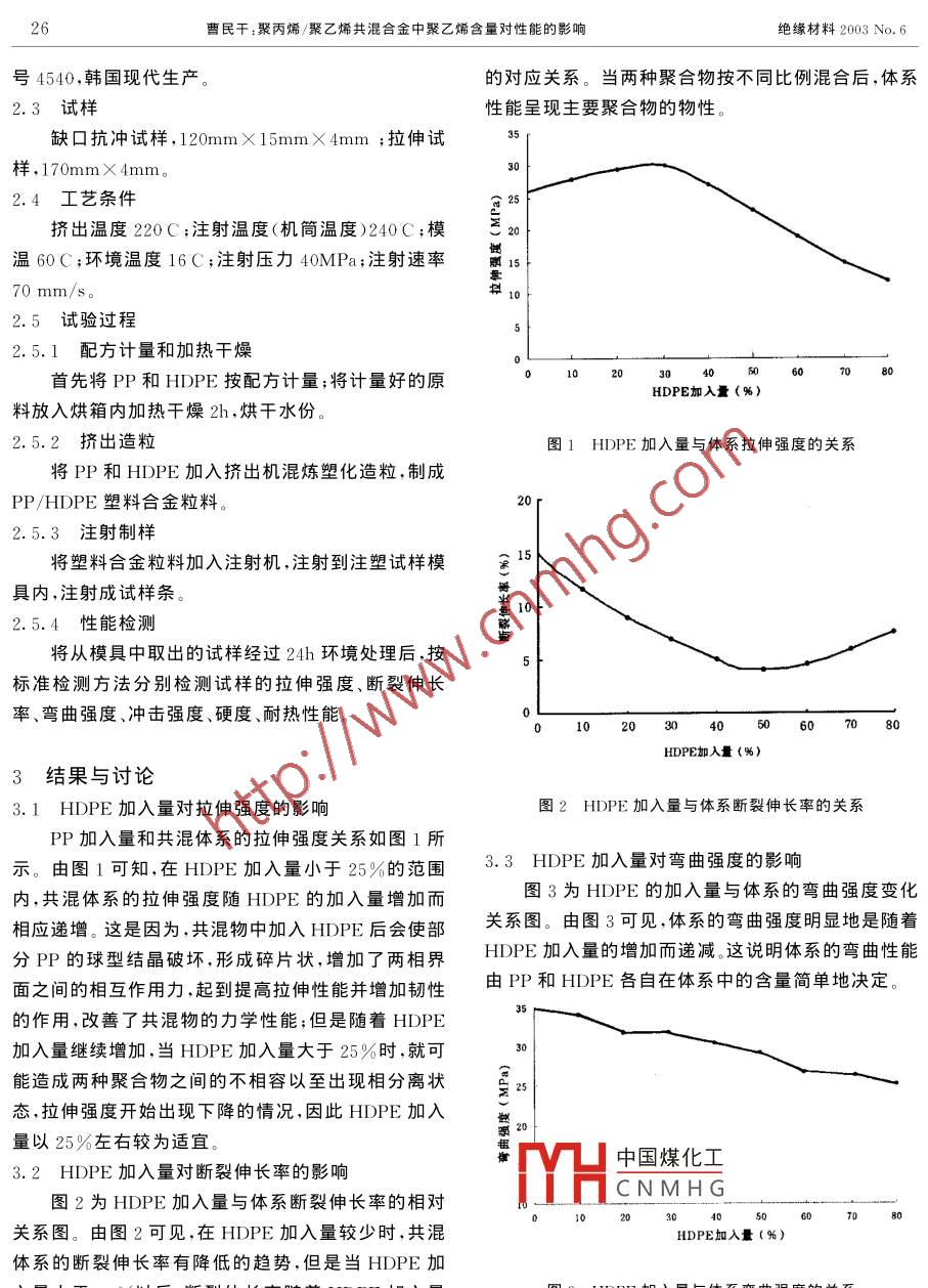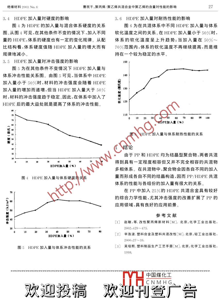 聚丙烯/聚乙烯共混合金中聚乙烯的含量对性能的影响