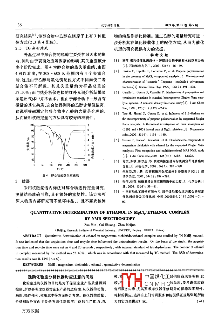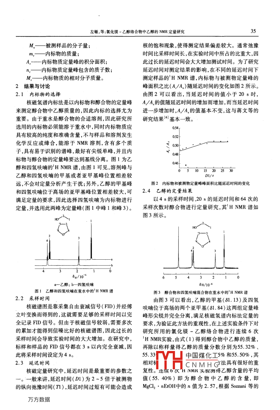 氯化镁-乙醇络合物中乙醇的NMR定量研究