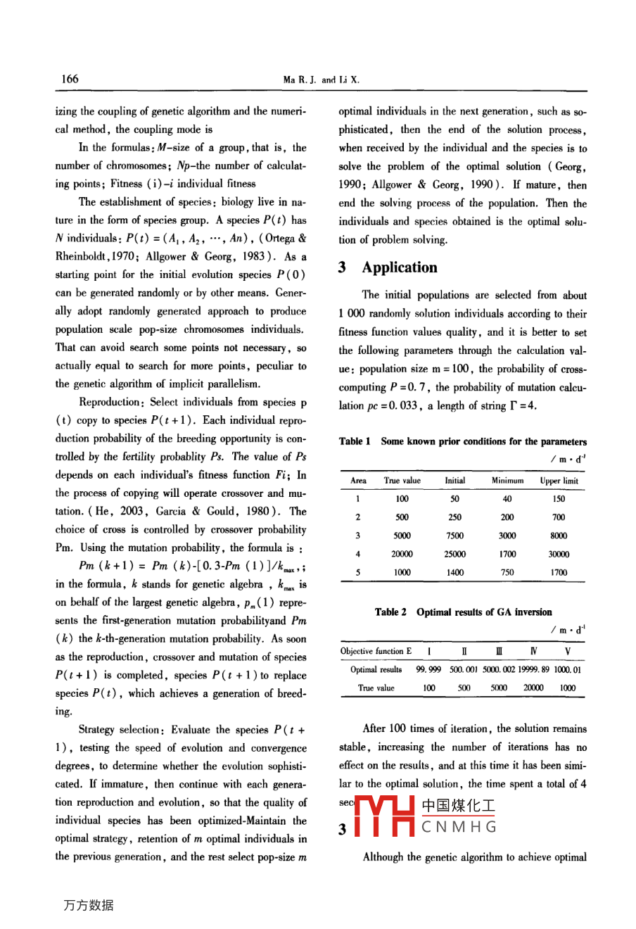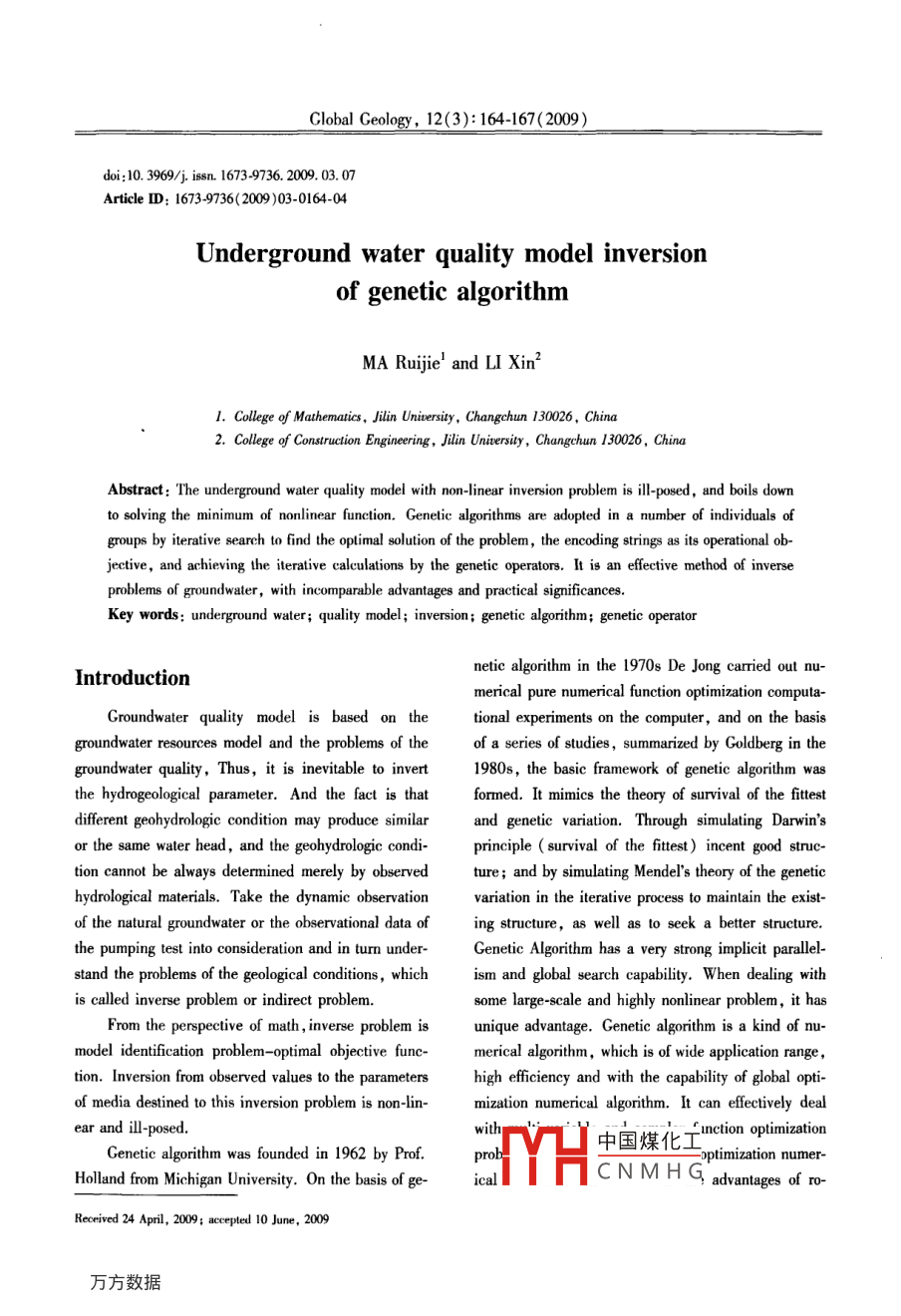 Underground water quality model inversion of genetic algorithm