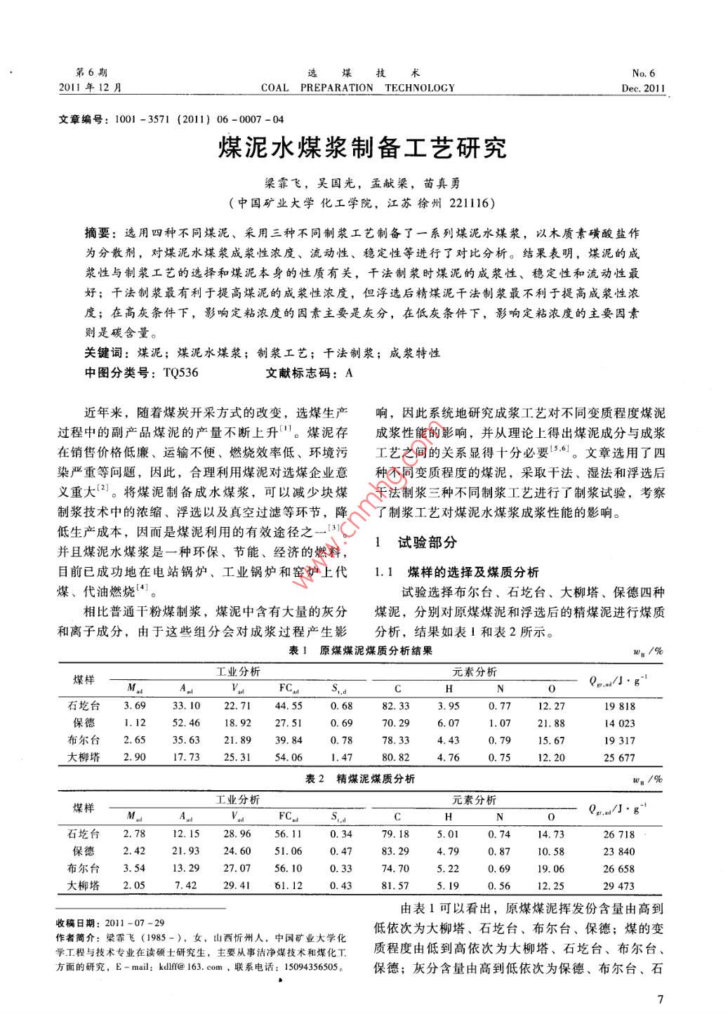煤泥水煤浆制备工艺研究