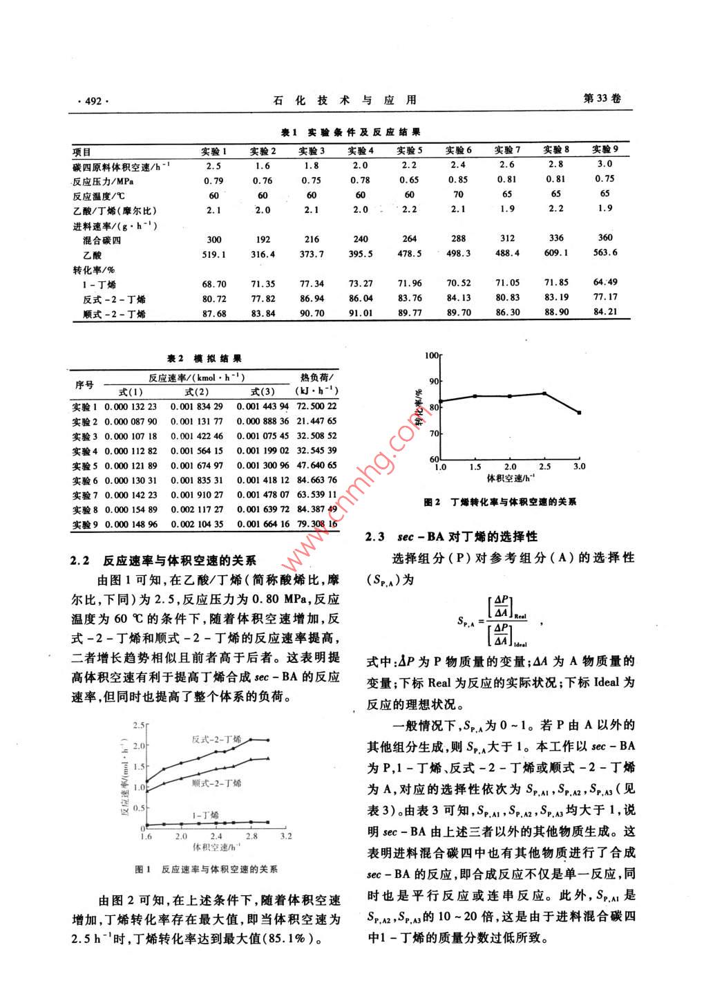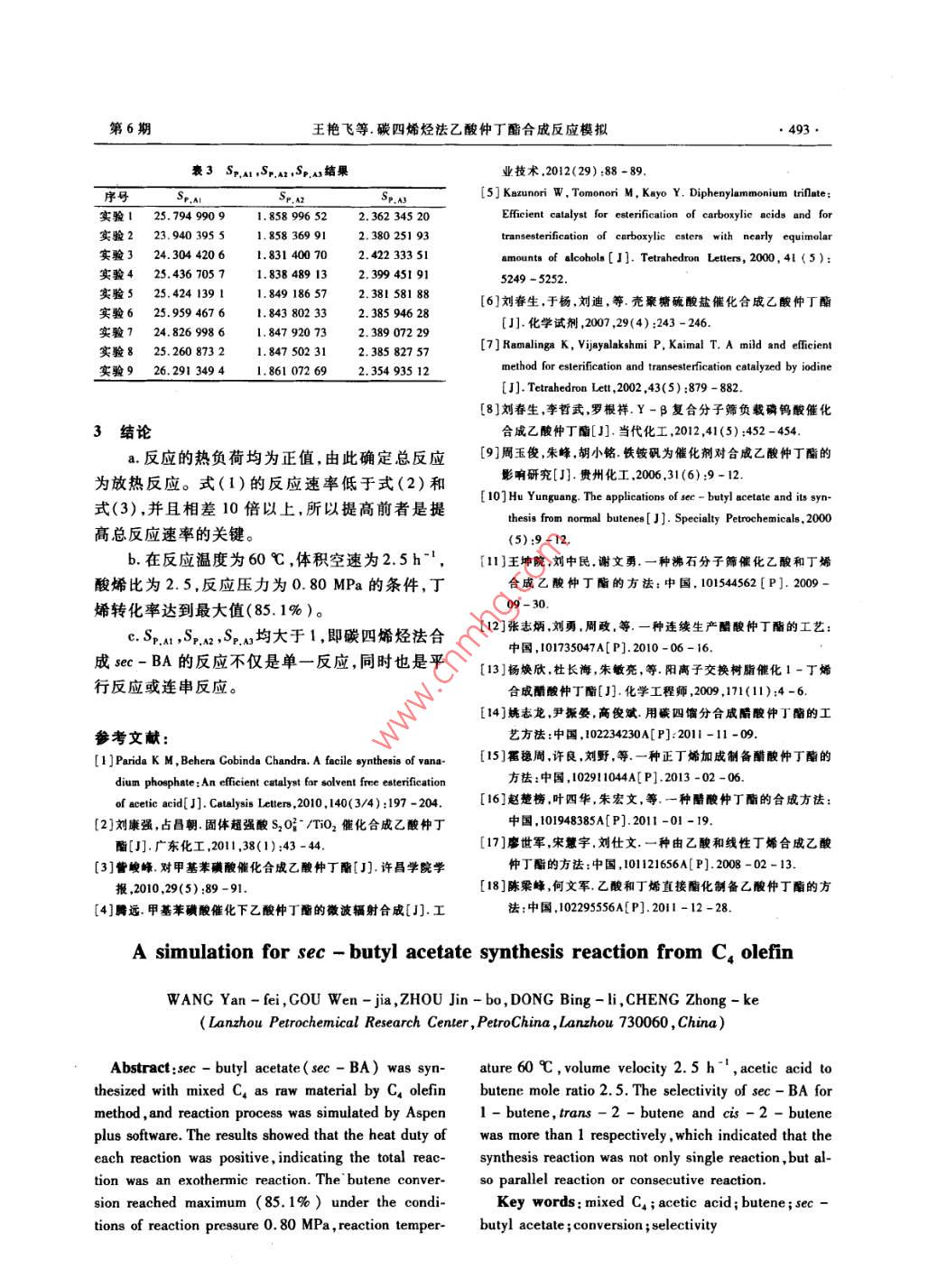 碳四烯烃法乙酸仲丁酯合成反应模拟