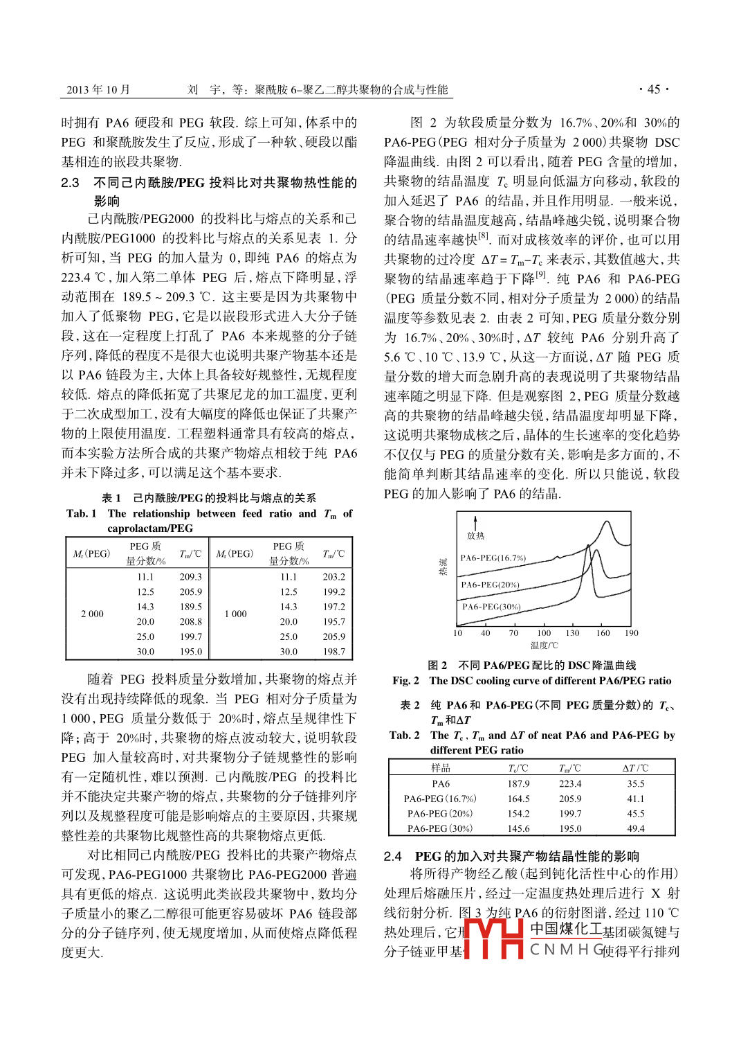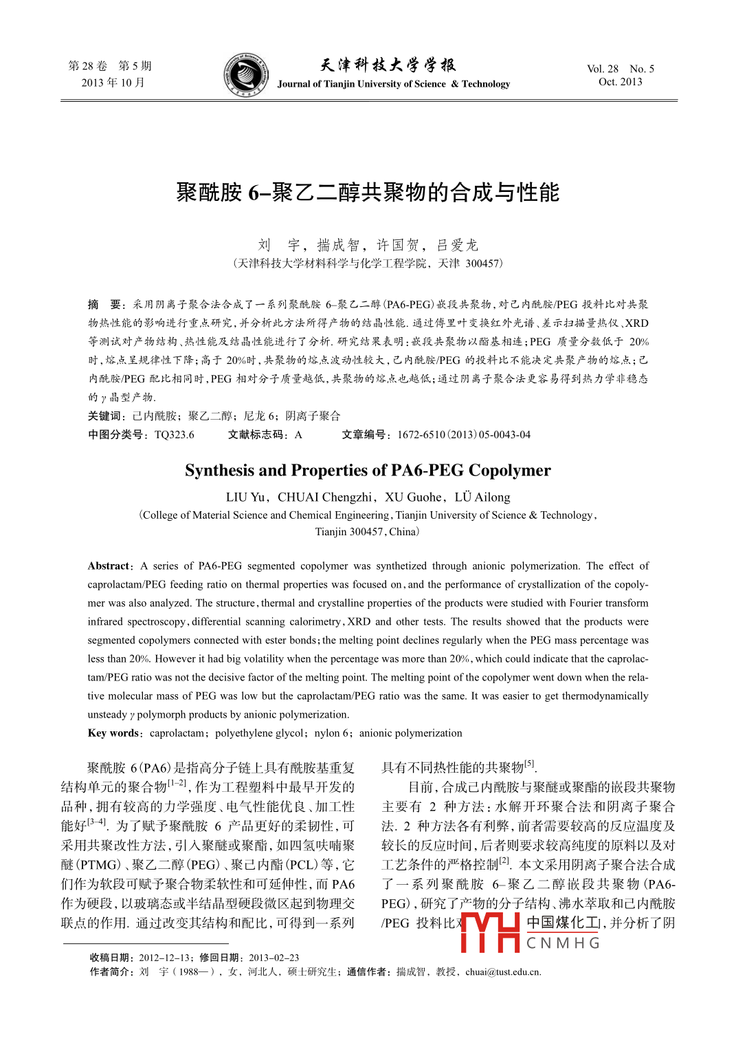 聚酰胺6-聚乙二醇共聚物的合成与性能