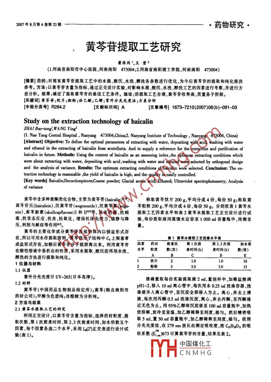 黄芩苷提取工艺研究