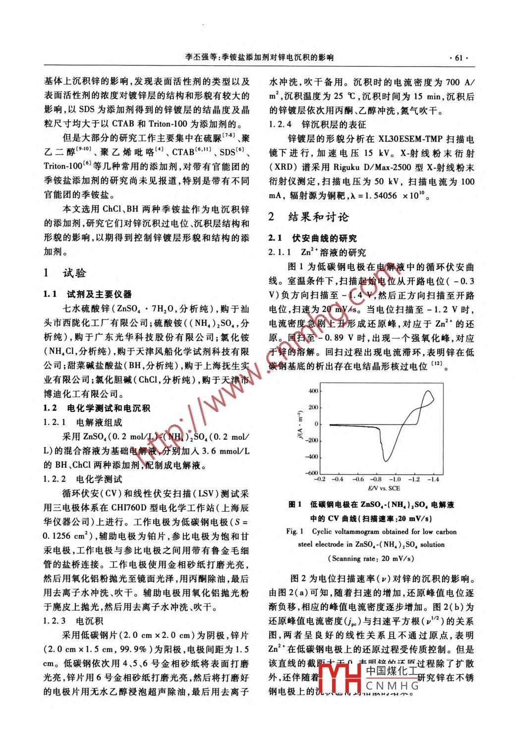 季铵盐添加剂对锌电沉积的影响
