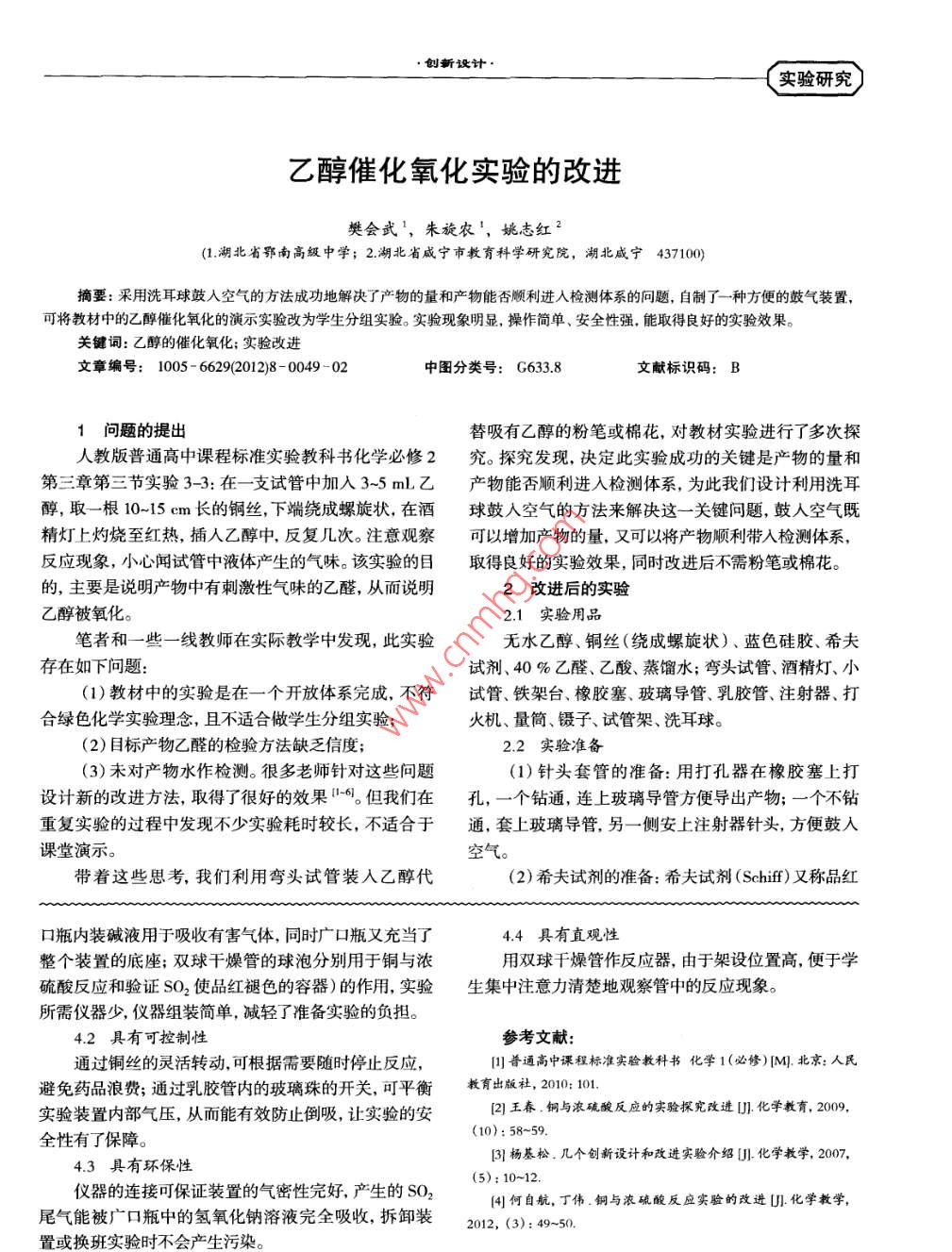 乙醇催化氧化实验的改进