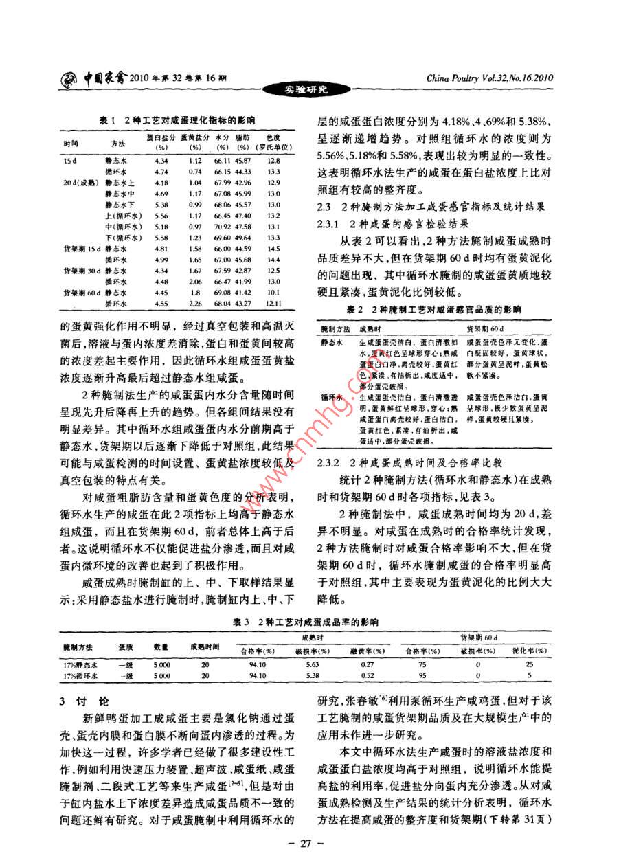 循环水腌制咸蛋工艺研究