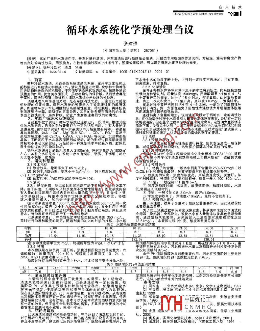 循环水系统化学预处理刍议
