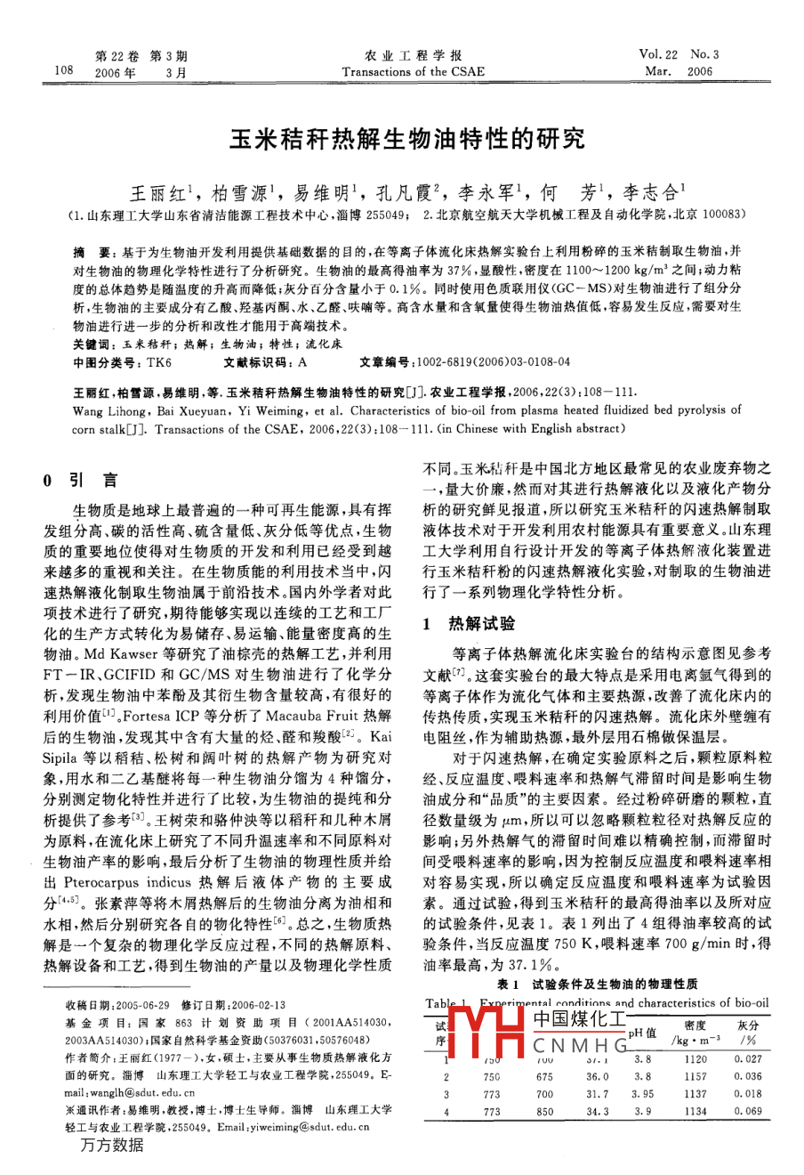 玉米秸秆热解生物油特性的研究