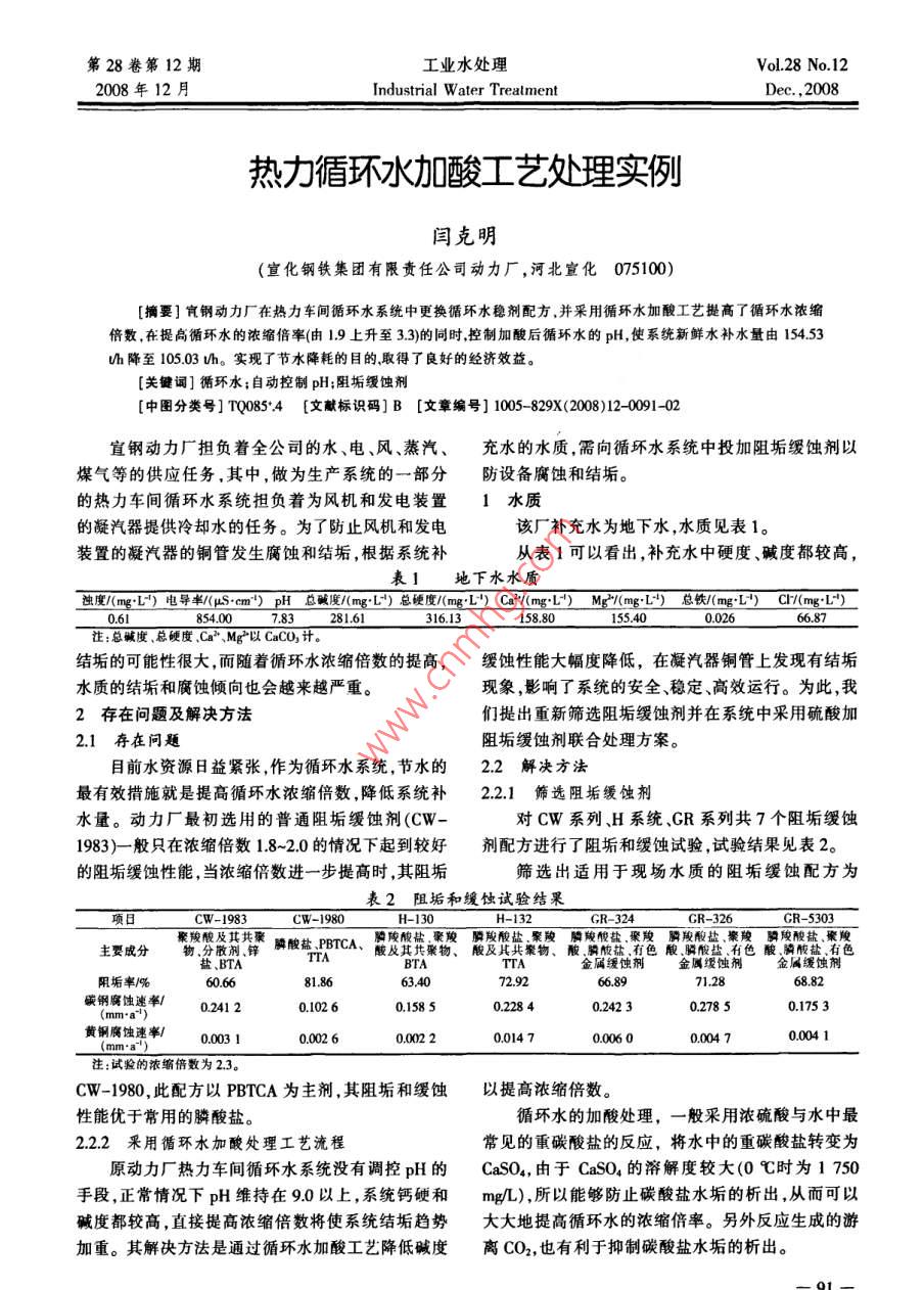 热力循环水加酸工艺处理实例