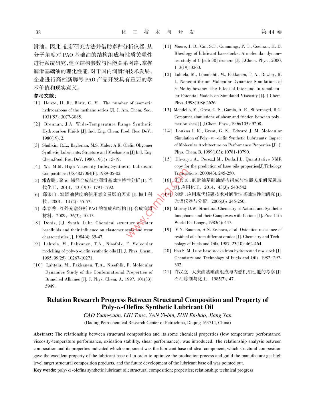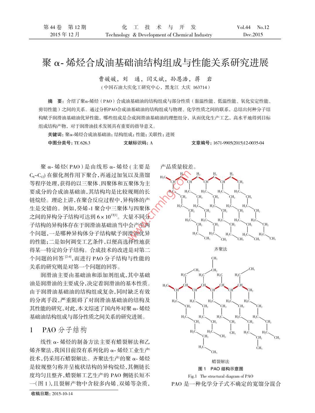 - 作者单位:中国雷竞技世界杯手机登录 大庆化工研究中心