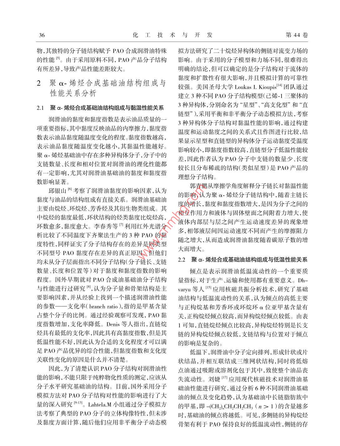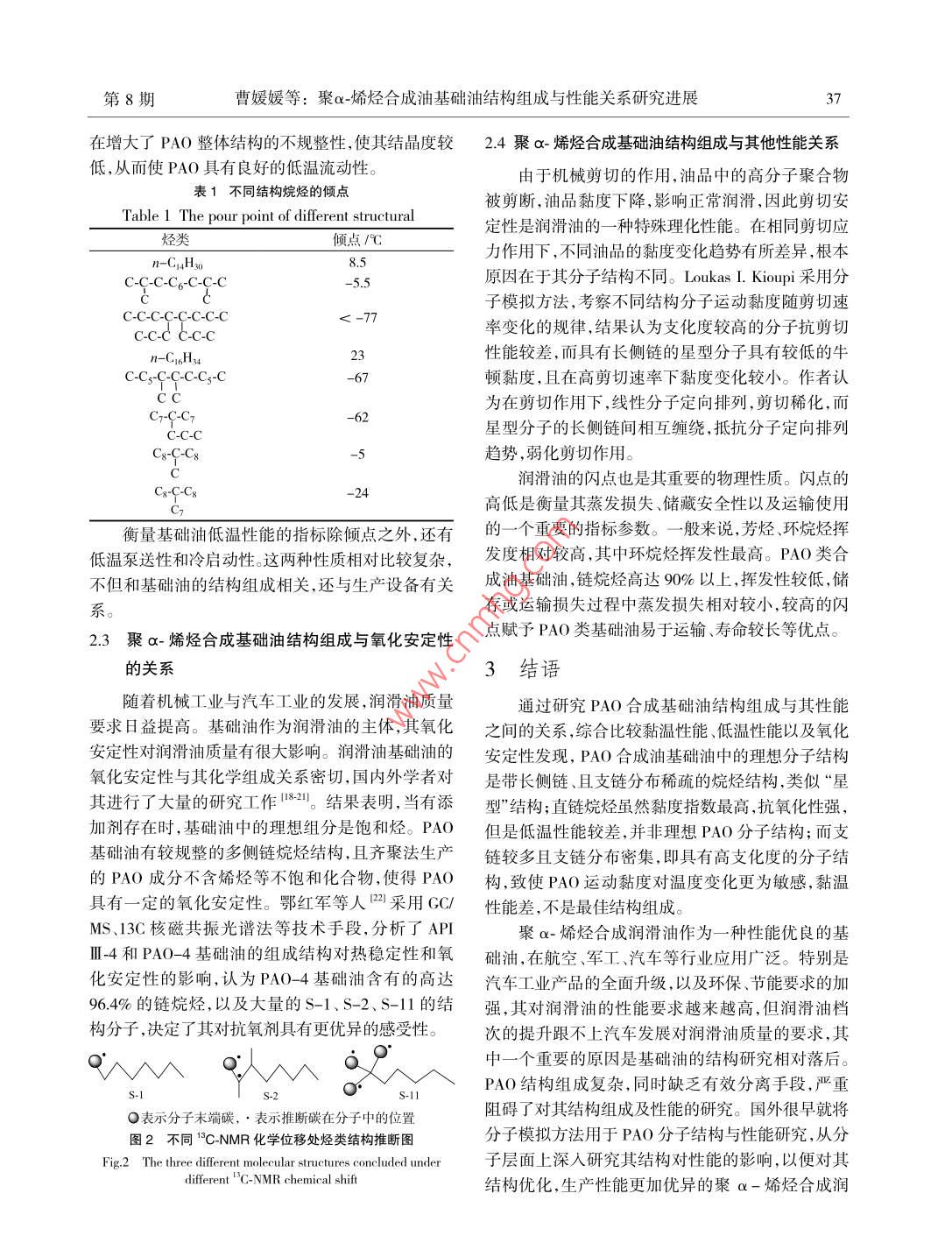 聚α-烯烃合成油基础油结构组成与性能关系研究进展