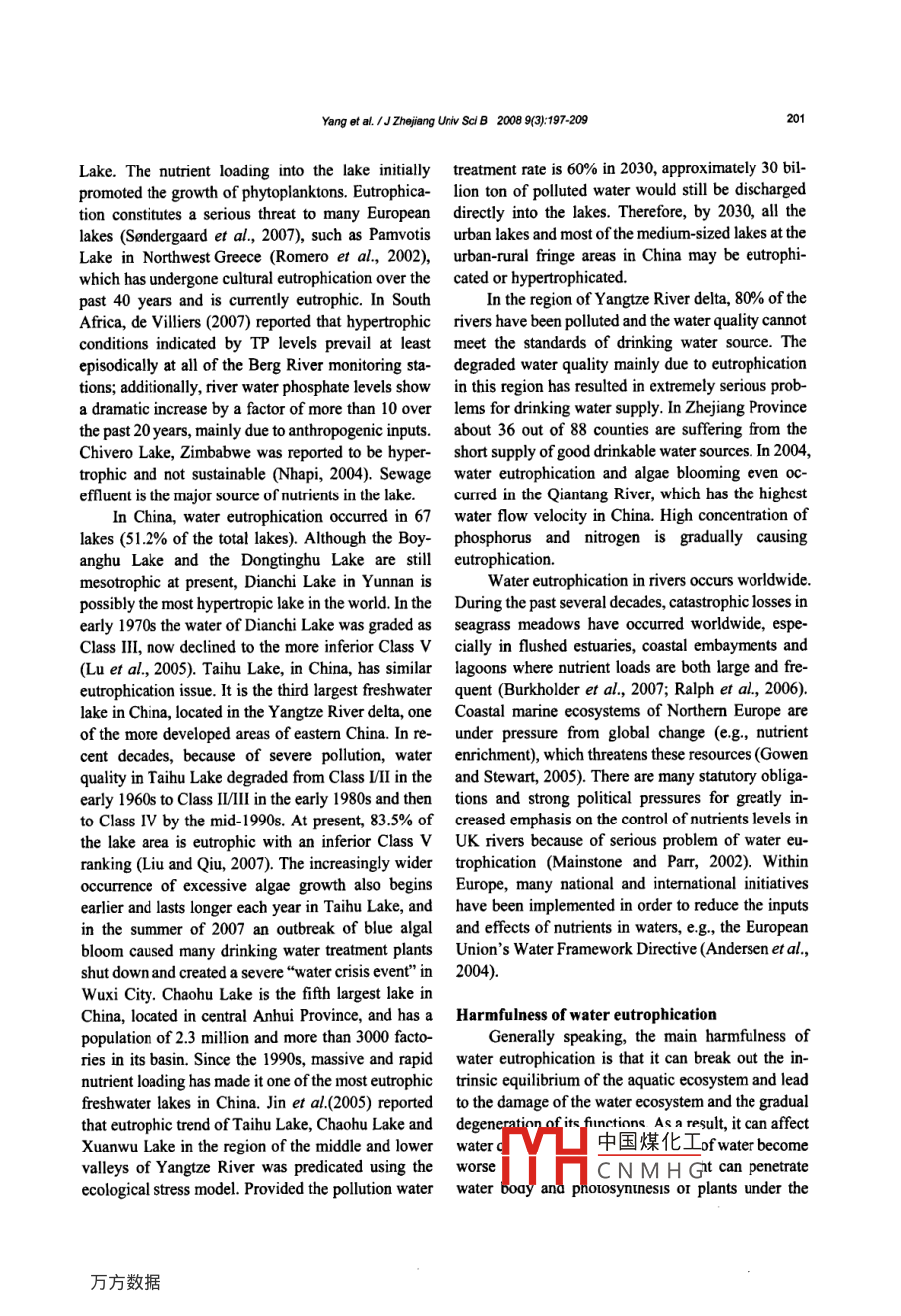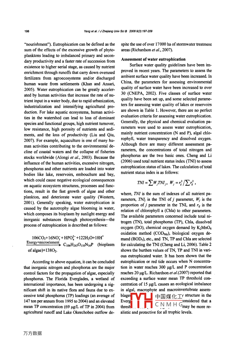 Mechanisms and assessment of water eutrophication