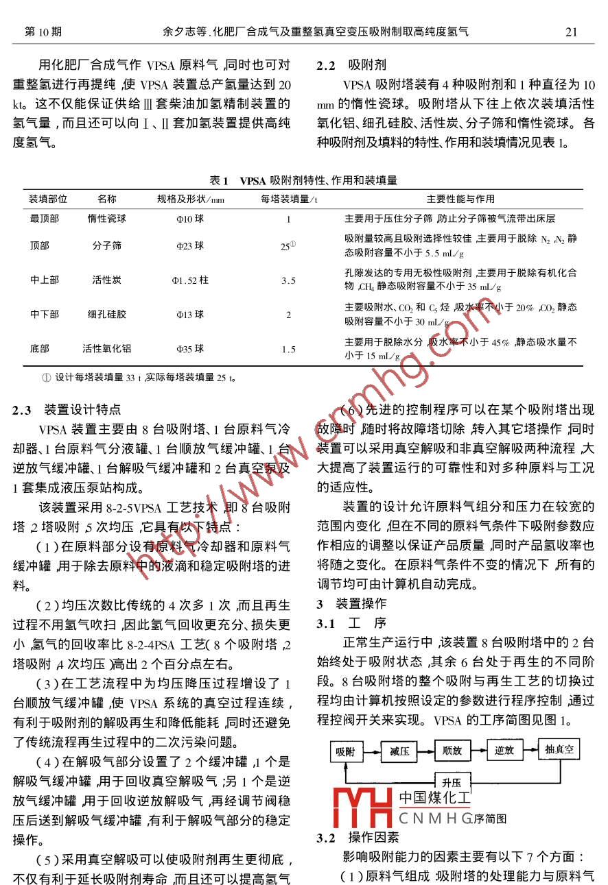 化肥厂合成气及重整氢真空变压吸附制取高纯度氢气