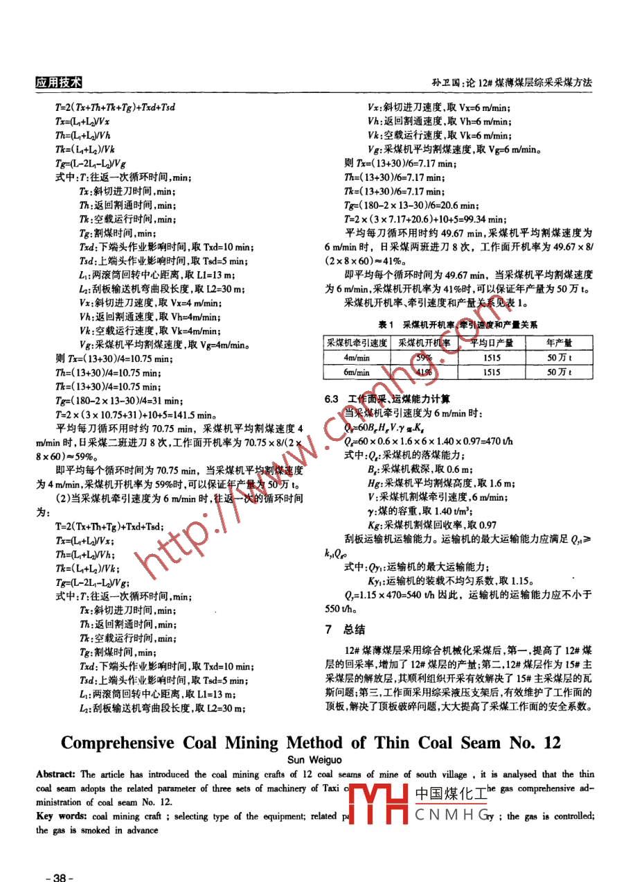 论12#煤薄煤层综采采煤方法