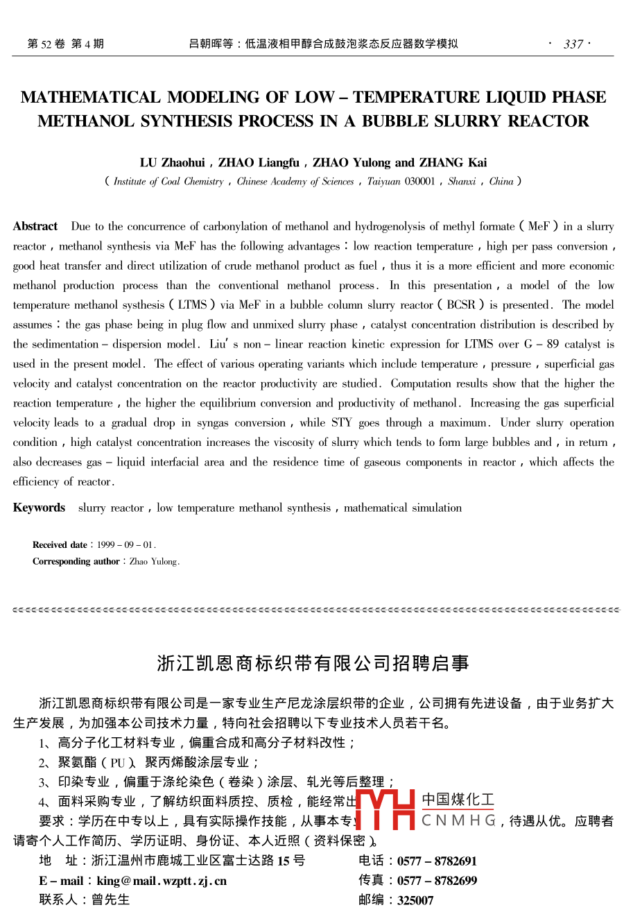 - 作者单位:中国科学院山西煤炭化学研究所,