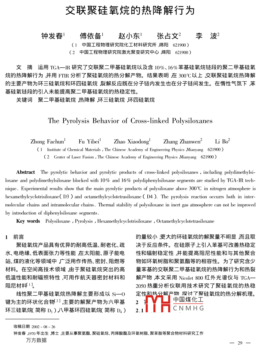 - 论文作者:钟发春,傅依备,赵小东,张占文,李波