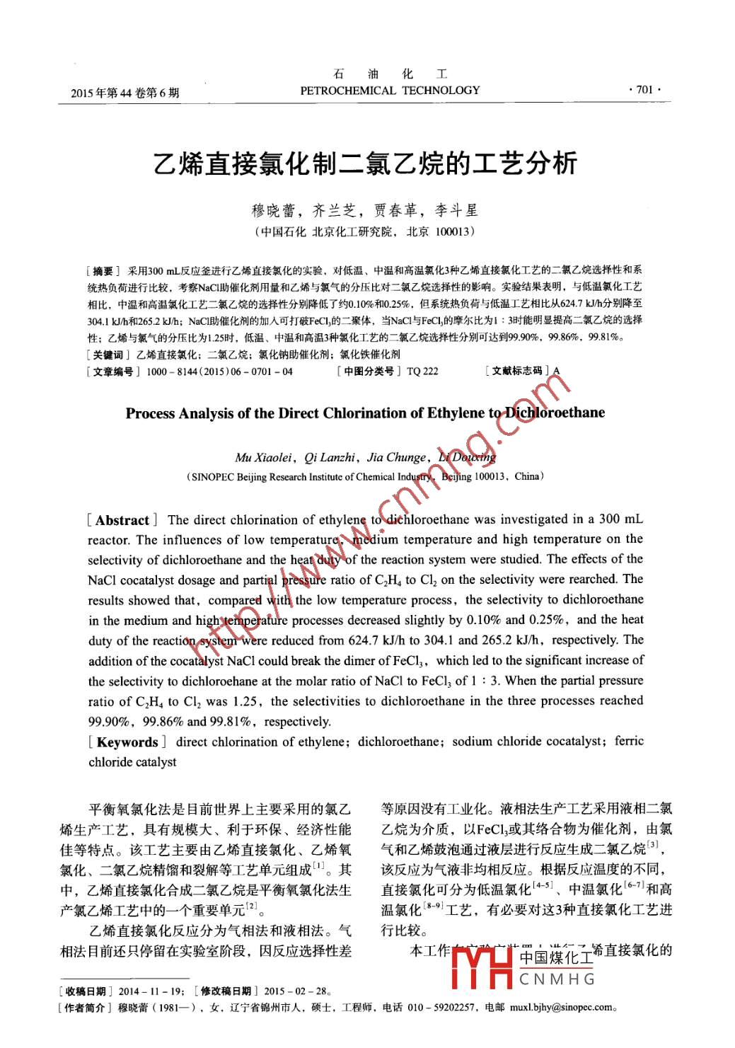 - 期刊名字:雷竞技世界杯手机登录 化工